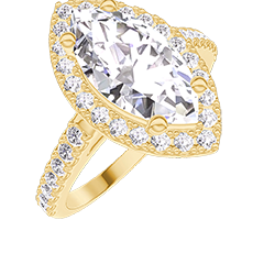 Anello Oro giallo 18 carati - Diamante di laboratorio Marchesa 1 Carati - Halo Diamante di laboratorio - Incastonatura Diamante di laboratorio