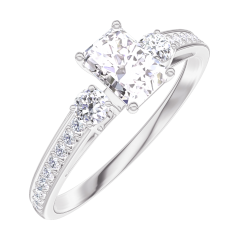 Anello Oro bianco 9 carati - Diamante Rettangolo 0.3 Carati - Pietre laterali Diamante - Incastonatura Diamante