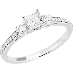 « L'ATELIER » N. 180128Anello Oro bianco 9 carati - Diamante di laboratorio Principessa 0.3 Carati - Pietre laterali Diamante di laboratorio - Incastonatura Diamante di laboratorio
