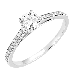 Il design valorizza linee pure e luce naturale, creando un gioiello senza tempo che simboleggia un impegno sincero e duraturo. La delicata incastonatura pavé sottolinea la raffinata maestria artigianale.