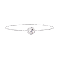 Bracciale Oro bianco 9 carati - Diamante Rotonda 0.3 Carati - Halo Diamante - Catena Rolò