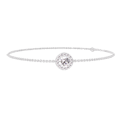 Bracciale Oro bianco 9 carati - Diamante di laboratorio Rotonda 0.3 Carati - Halo Diamante di laboratorio - Catena Rolò