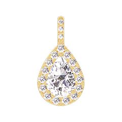 Ciondolo Oro giallo 18 carati - Diamante di laboratorio Goccia 0.3 Carati - Halo Diamante di laboratorio - Incastonatura Diamante di laboratorio - Nessuna catenella