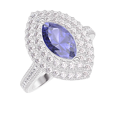 « L'ATELIER » N. 405551Anello Oro bianco 9 carati - Zaffiro blu Marchesa 0.5 Carati - Halo Diamante - Incastonatura Diamante
