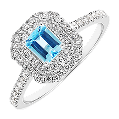 Anello Oro bianco 9 carati - Topazio blu Rettangolo 0.5 Carati - Halo Diamante - Incastonatura Diamante