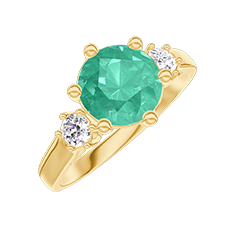 « L'ATELIER » N. 423278Anello Oro giallo 18 carati - Smeraldo Rotonda 1 Carati - Pietre laterali Diamante