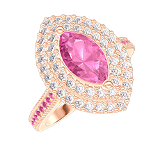 « L'ATELIER » N. 448319Anello Oro rosa 9 carati - Zaffiro rosa Marchesa 0.5 Carati - Halo Diamante - Incastonatura Zaffiro rosa