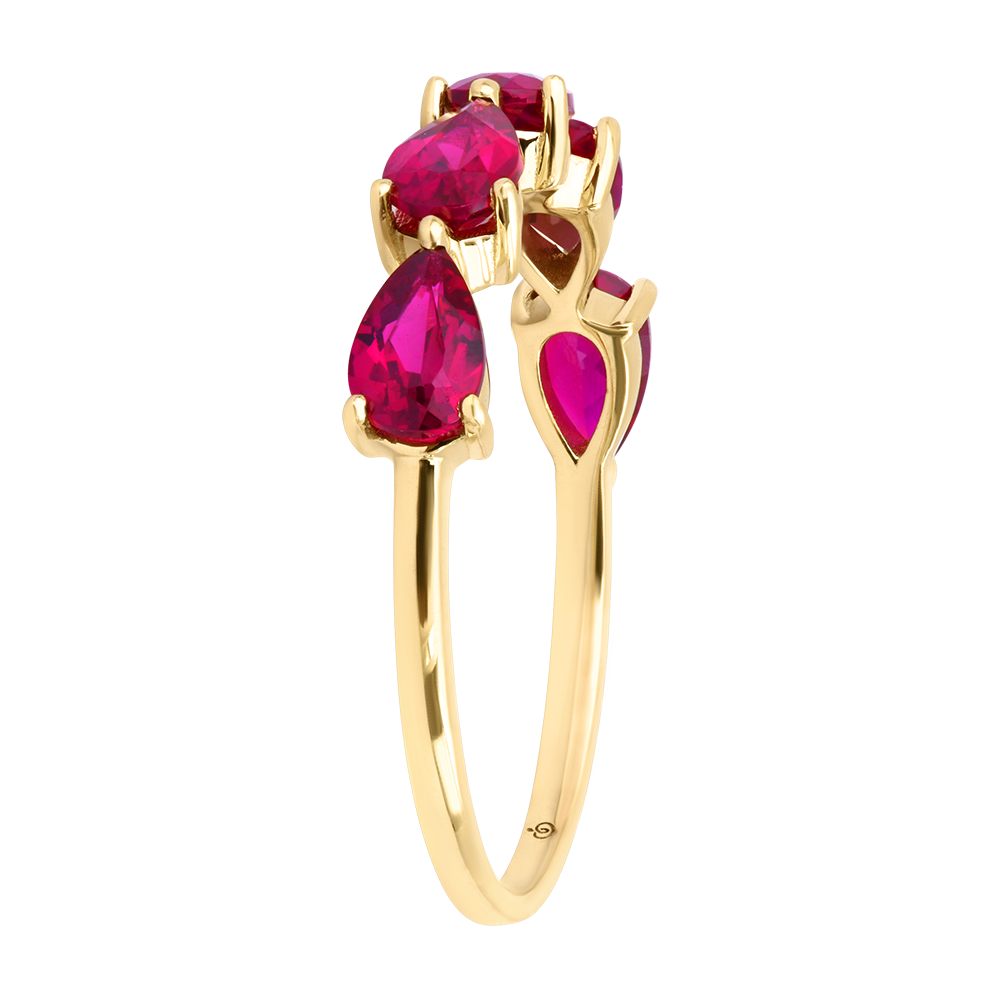 - Design creativo a degradé con cinque rubini sintetici a forma di goccia