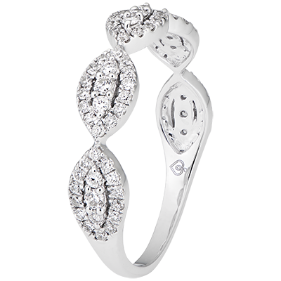 Un anello con un semi pavé a mandorla fine e originale, da indossare come fede nuziale o anello da sovrapporre ad altri.