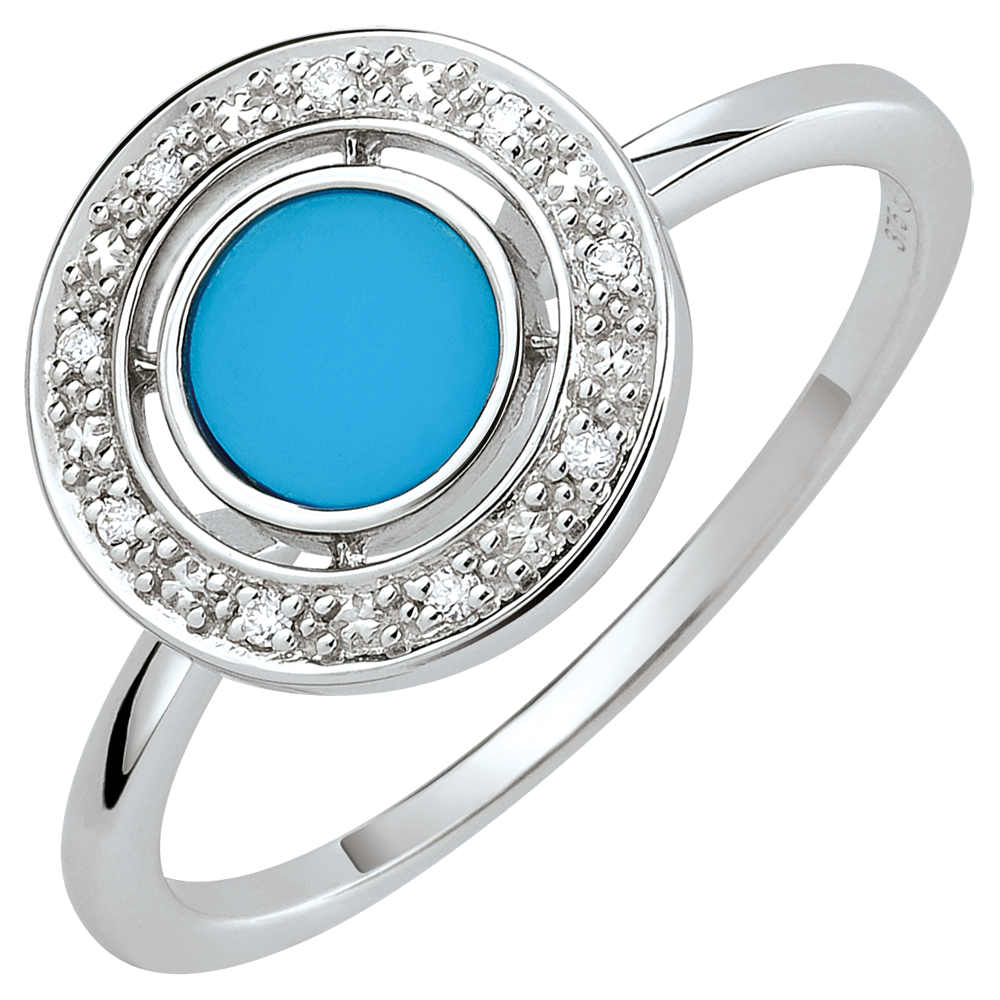 Anello Beatitudine - Turchese e diamanti - Oro bianco 9 carati