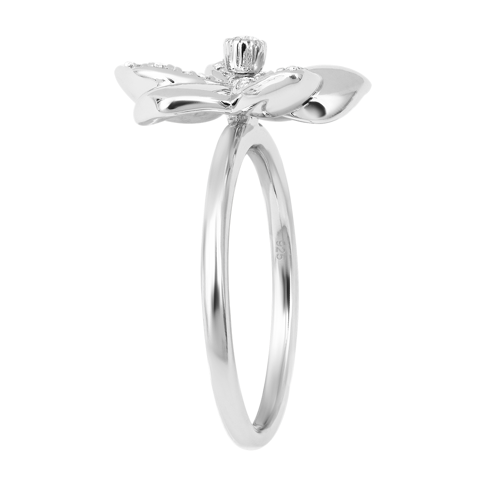 L’anello Cattleya si ispira all’omonima orchidea, simbolo di raffinata eleganza. Il motivo floreale, che alterna superfici lisce a pavé di diamanti sintetici, cattura la luce con discrezione. Un gioiello dal design perfettamente bilanciato, delicato ma deciso.