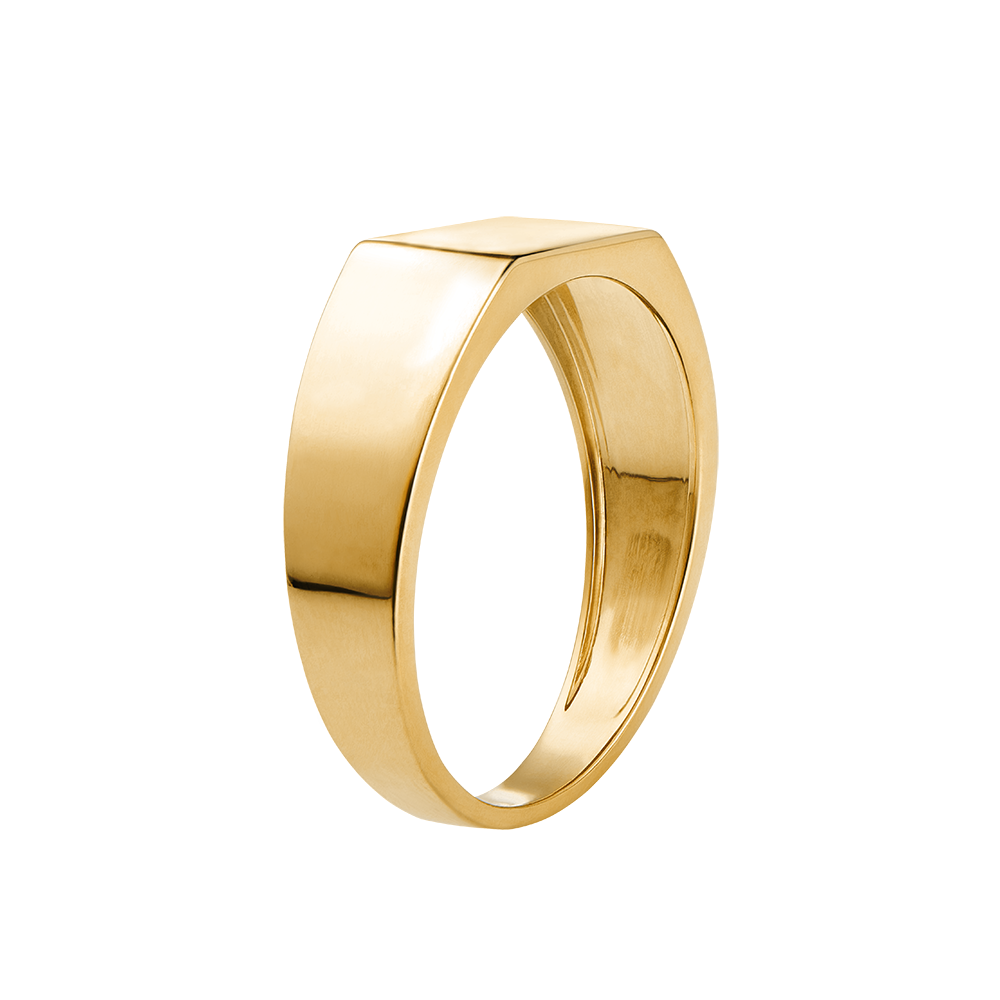 Una chevalière in oro giallo dal piano rettangolare. Un gioiello semplice ed elegante.