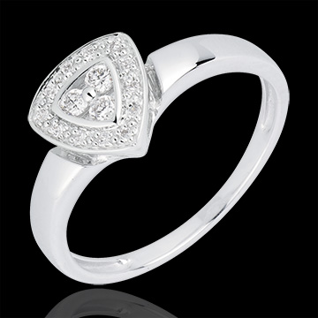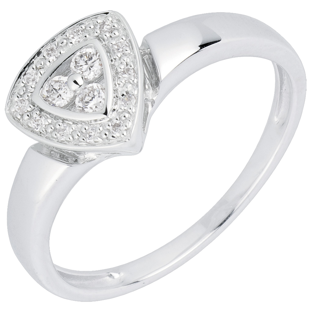 Un anello dal motivo triangolare in Oro e diamanti di grande eleganza, per sentirsi come una vera star del cinema.