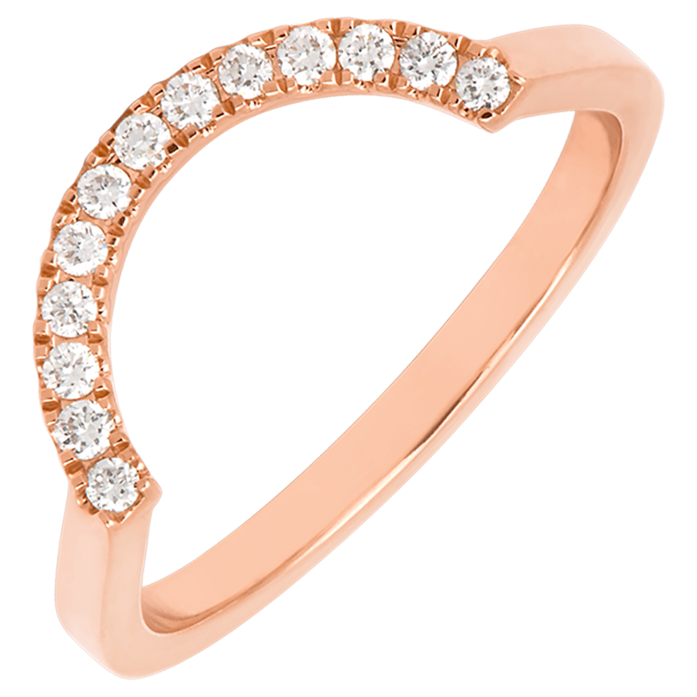 La Fede nuziale Contour con diamanti aggiunge un tocco di luce in più al trio Romance Moderne. In oro lucido, la sua curva delicata è illuminata da un pavé di diamanti scintillanti che valorizza con finezza la forma dell’anello centrale. Indossata da sola o insieme alla Fede nuziale Contour e all’anello Cabochon Aura Nacrée, rivela tutta la ricchezza di uno stile moderno e raffinato.