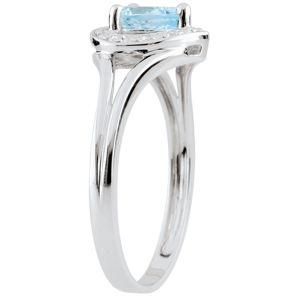 Anello Cuore Incantato - Oro bianco - 18 carati - 10 Diamanti - Topazio blu