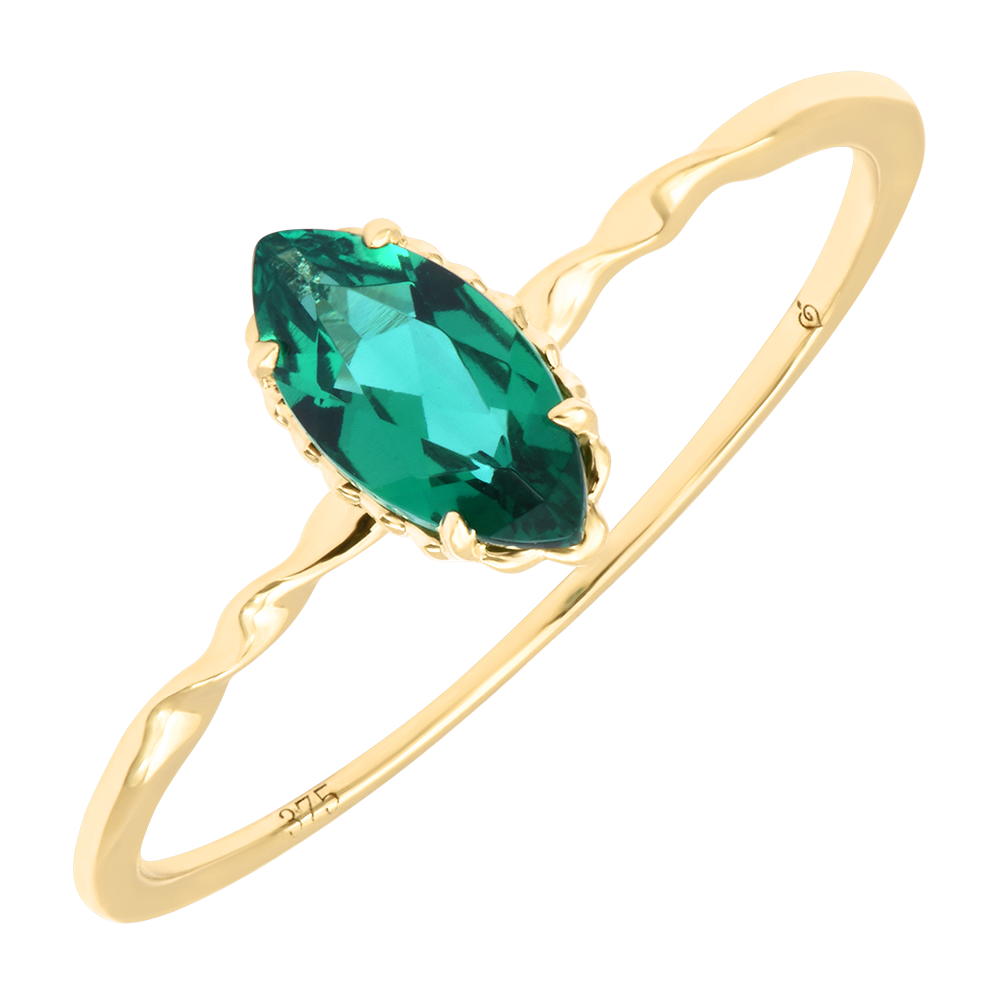 Anello Daphné – Oro giallo 9 carati, smeraldo sintetico
