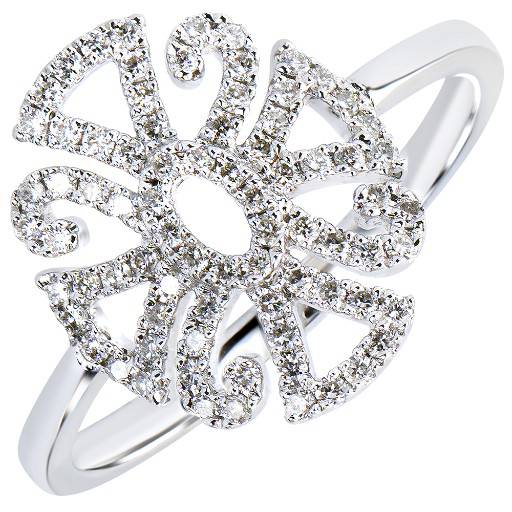Anello Destino - Arabesque variante - oro bianco 9 carati e diamanti