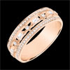 Eleganza e personalità caratterizzano questo anello abbagliante e singolare, con un'alternanza di brillanti e diamanti baguette su oro rosa