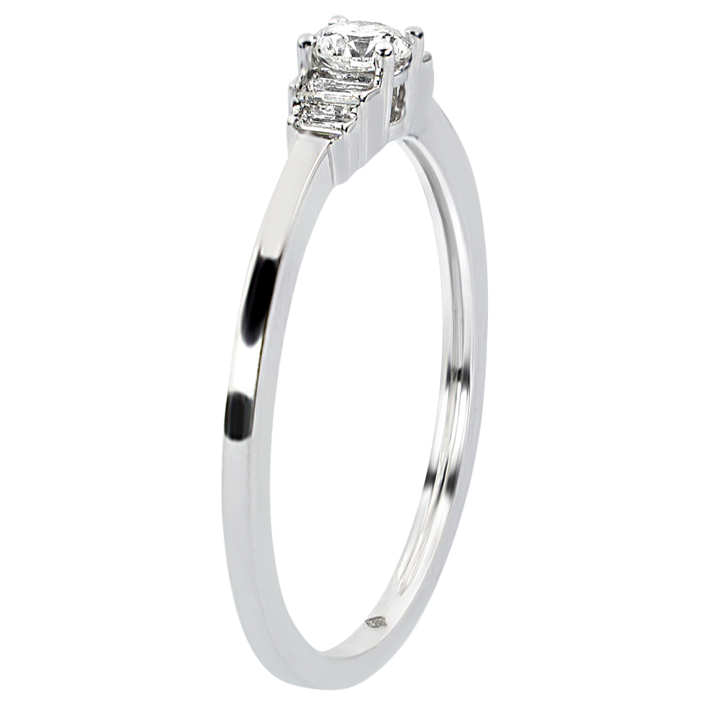 Un diamante solitario affiancato da 4 diamanti baguette su una montatura che unisce grazia e delicatezza.