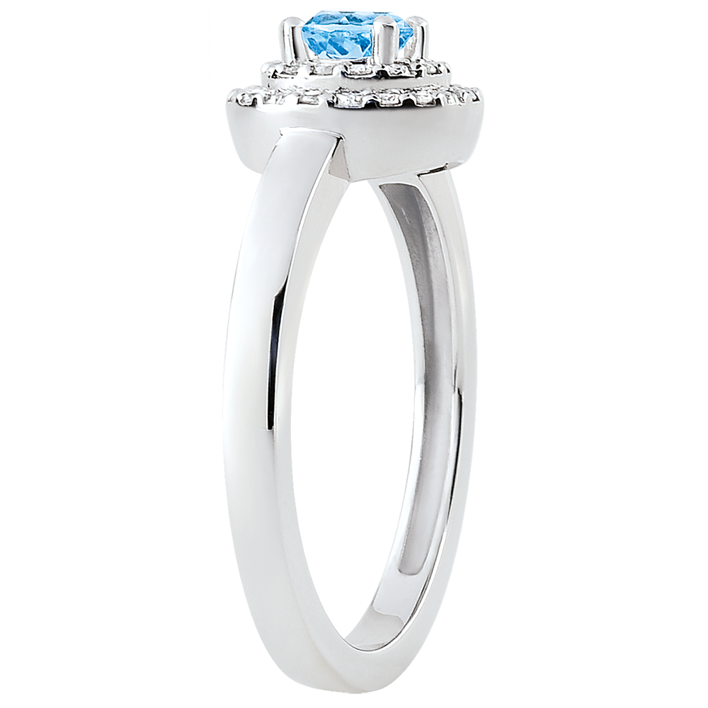 Eleganza senza tempo per questo anello di fidanzamento con un topazio incastonato in una doppia fila di diamanti. Meraviglia e romanticismo per questo solitario accompagnato.