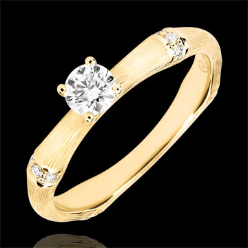 I nodi del bambù sono impreziositi da 13 diamanti bianchi HSI per un totale di 0,3 carati, con un diamante solitario centrale di 0,2 carati.