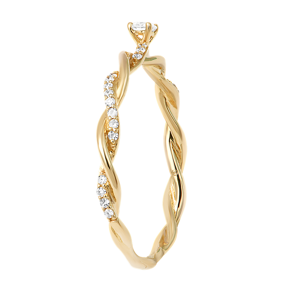 L'anello "Olympe" combina due fili d'oro intrecciati: uno in oro giallo puro e l'altro pavé di diamanti. Al centro, un diamante di 0.052 carati aggiunge un tocco di splendore. Una fusione elegante di luce e lucentezza per un gioiello senza tempo.