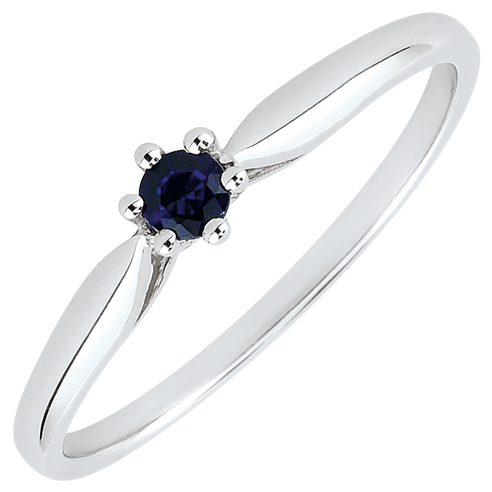 Anello di Fidanzamento Solitario Ramoscello - 6 griffes - Zaffiro 0.09 carati - Oro bianco 18 carati
