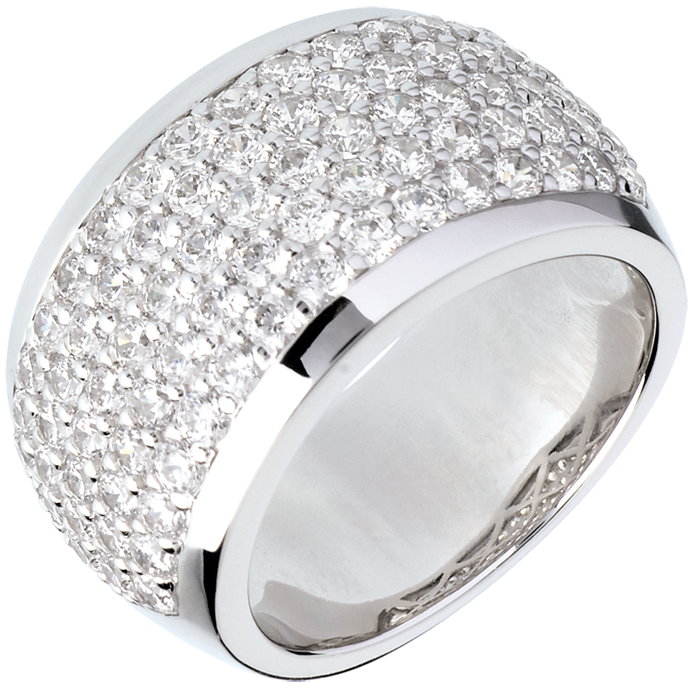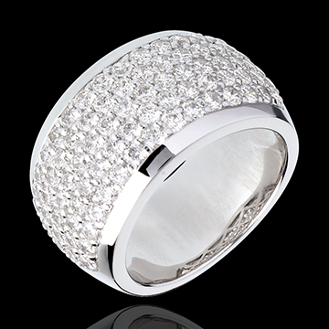 La luce iridiscente di un pavé di diamanti minuzioso e raffinato per un tocco di luce astrale al viso.