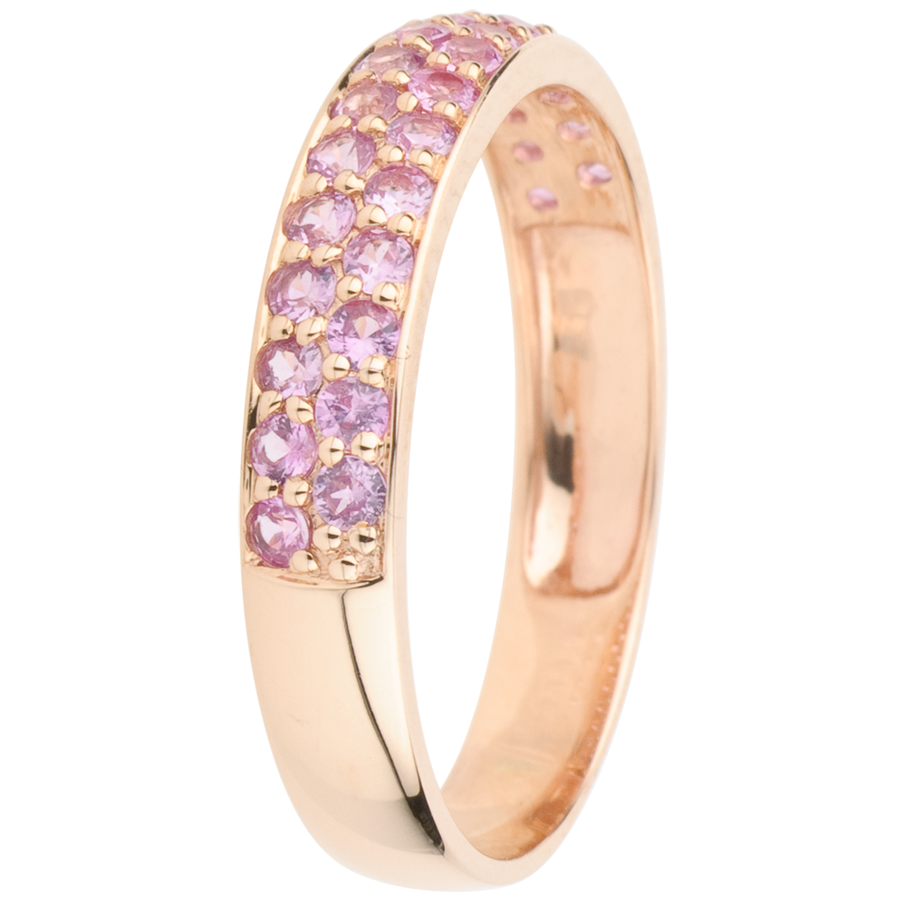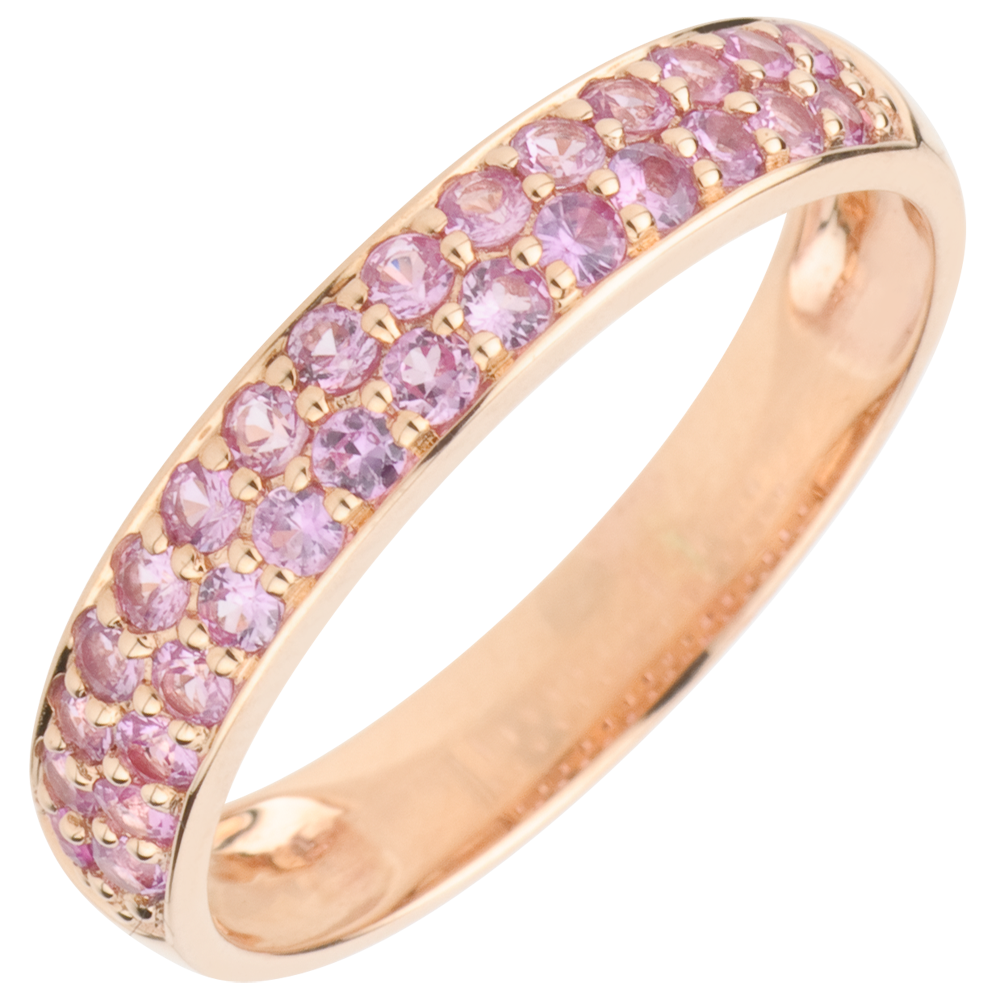 Anello Uccello del Paradiso - due file - Oro rosa - 9 carati - Zaffiro rosa