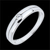 Un anello in Oro bianco attraversato al centro da una linea sulla quale troneggia un diamante solitario.