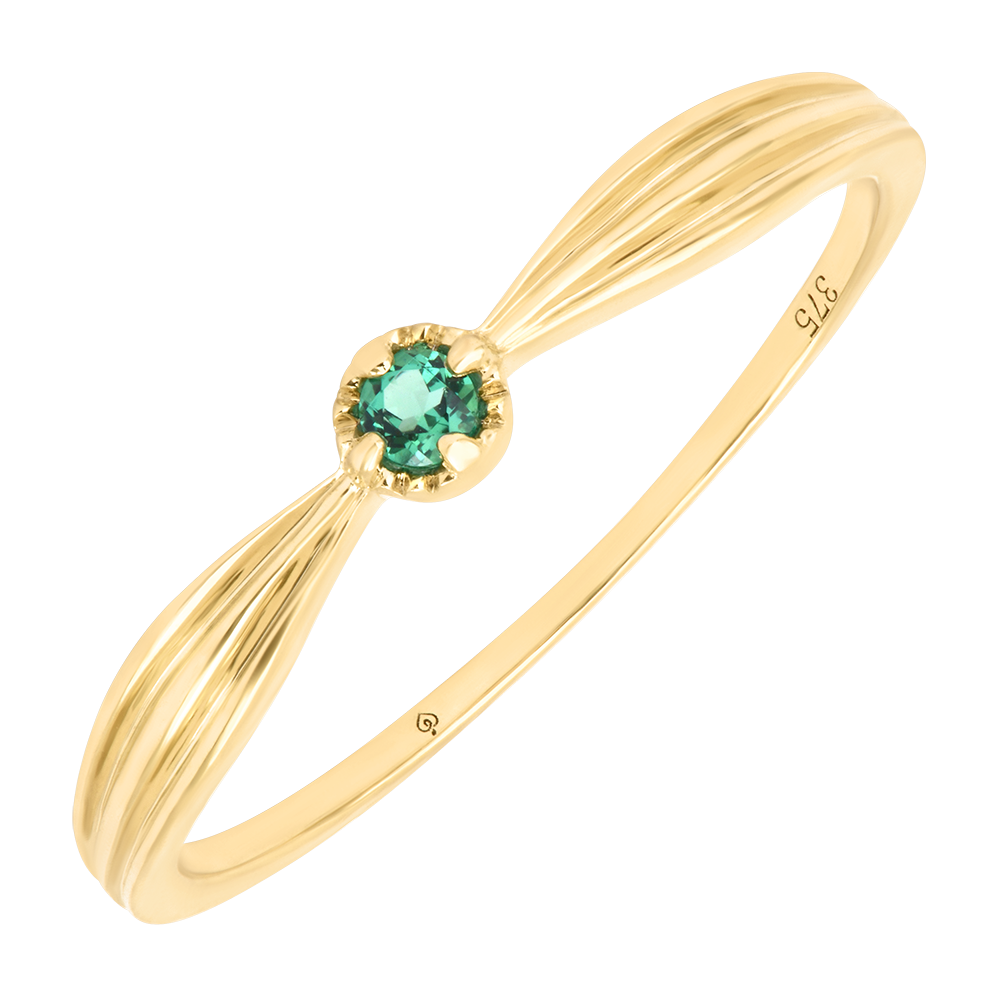 UCCELLO DEL PARADISO N. 26Anello di fidanzamento - Oro giallo 9 carati - Smeraldo sintetico ID : 3912