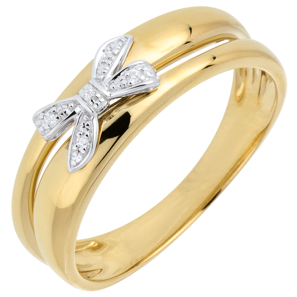 Anello Fiocco dell'Eden - Oro giallo - 18 carati - 5 Diamanti