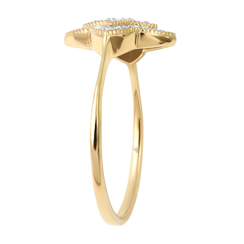 Questo anello combina lo splendore dei diamanti con un design ispirato ai fiori.