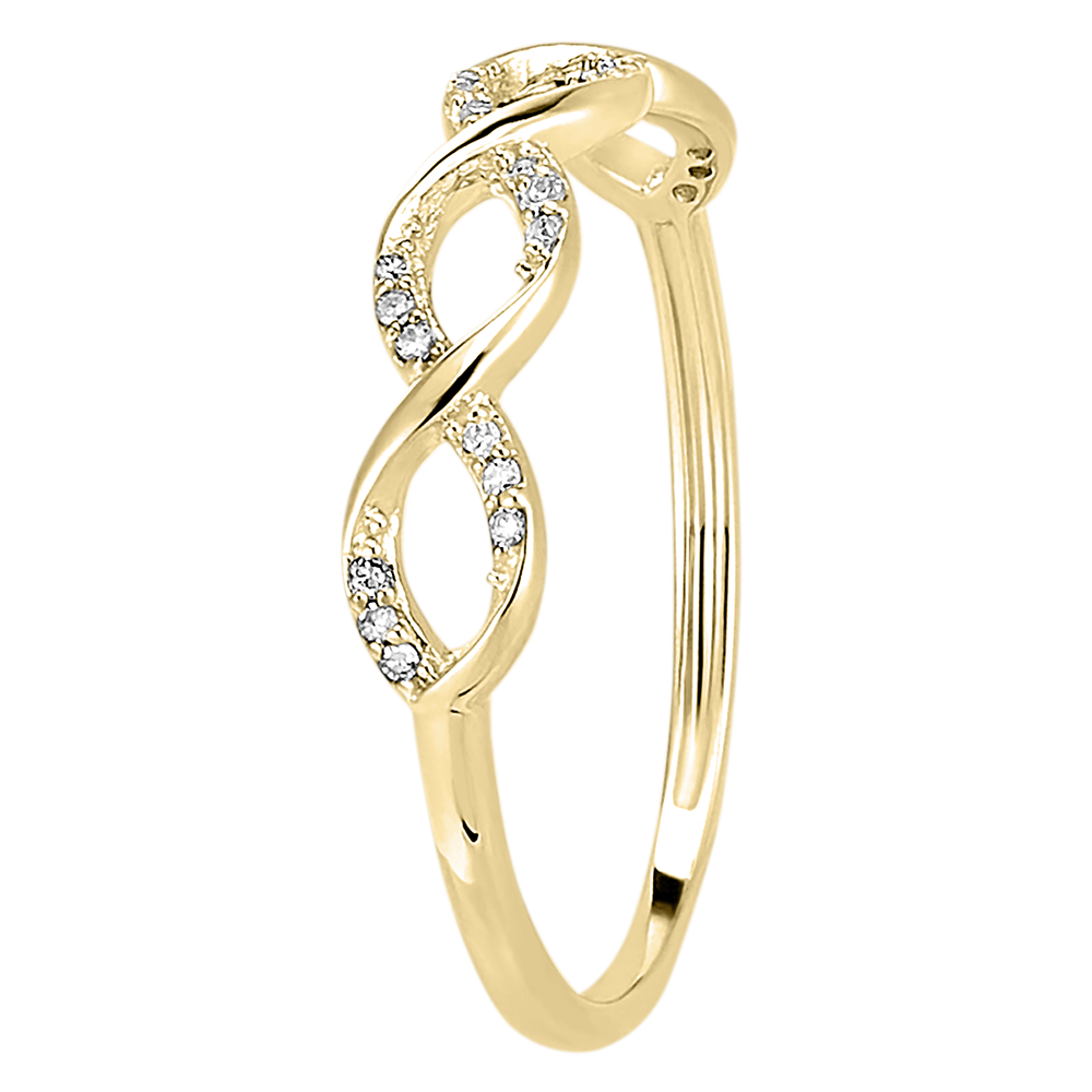 Un anello dai fili d'oro giallo intrecciati, impreziositi da diamanti scintillanti.