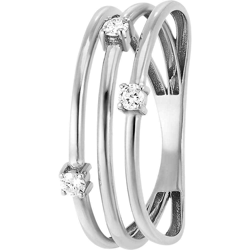 Un anello composto da 3 cerchi in oro bianco e impreziosito da 3 delicati diamanti. Delicatezza e splendore per questo modello da indossare in ogni occasione.