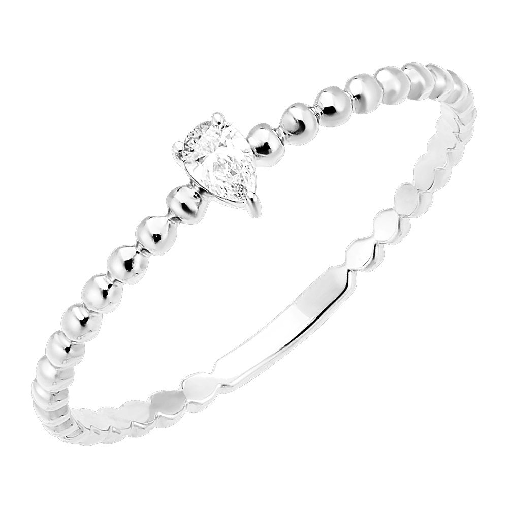 Il solitario Bubble Pear è composto da un delicato diamante taglio pera posto su un anello in oro bianco effetto bolla per un tocco di grazia moderna
