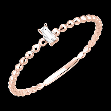 Il solitario Bubble Smeraldo è composto da un delicato diamante taglio smeraldo posto su un anello in oro rosa effetto bolla per un tocco di grazia moderna