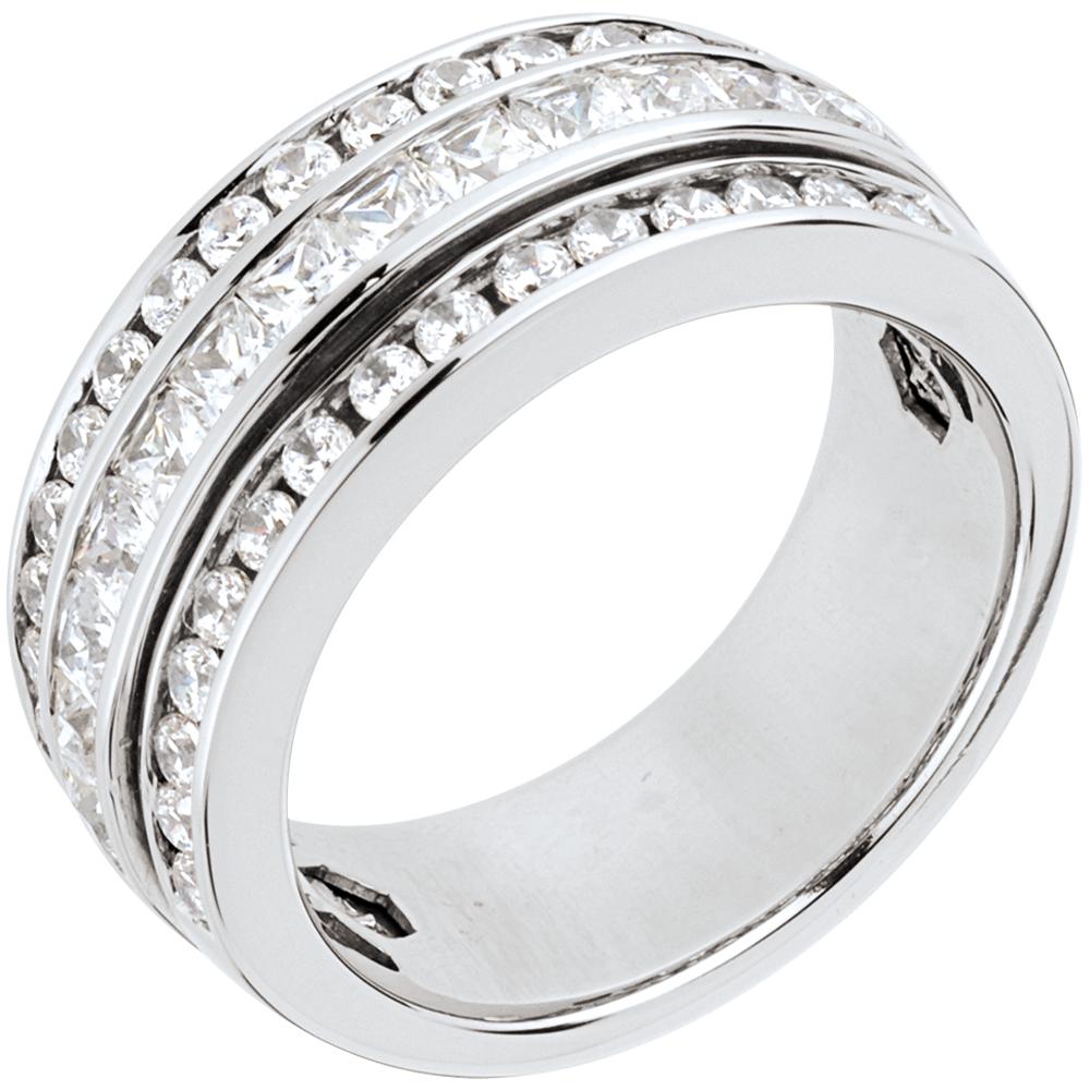 Un largo anello composto da tre file di 13 diamanti, per una geometria e una brillantezza perfetta.