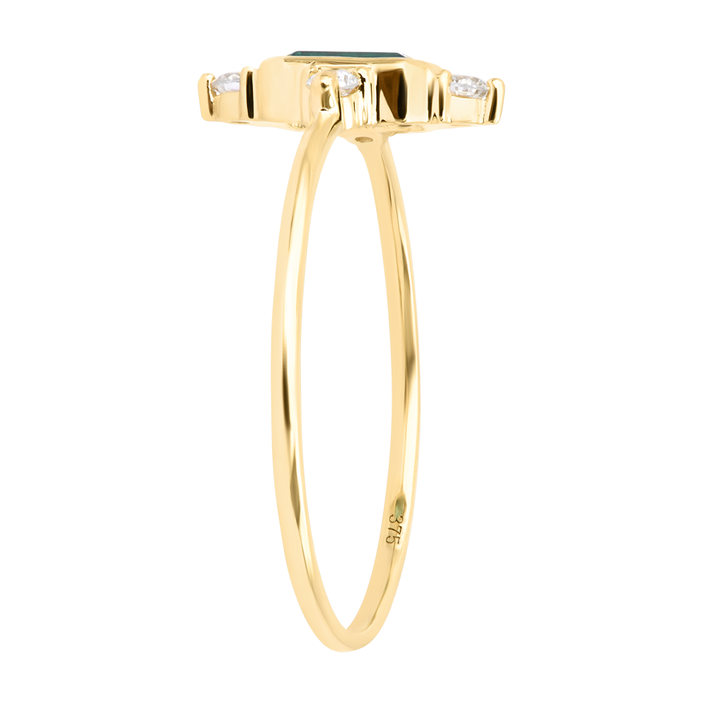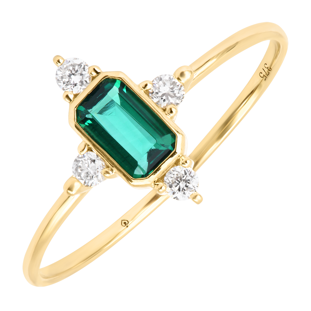 Anello Iselda – Oro giallo 9 carati, smeraldo sintetico e diamanti sintetici