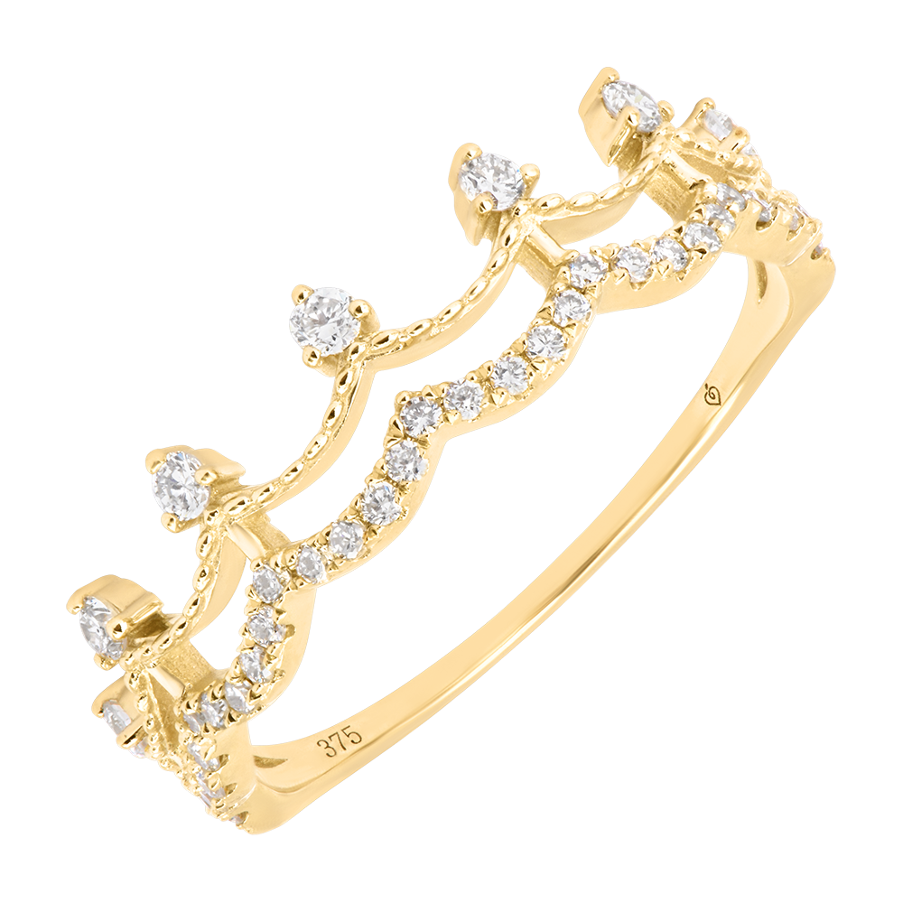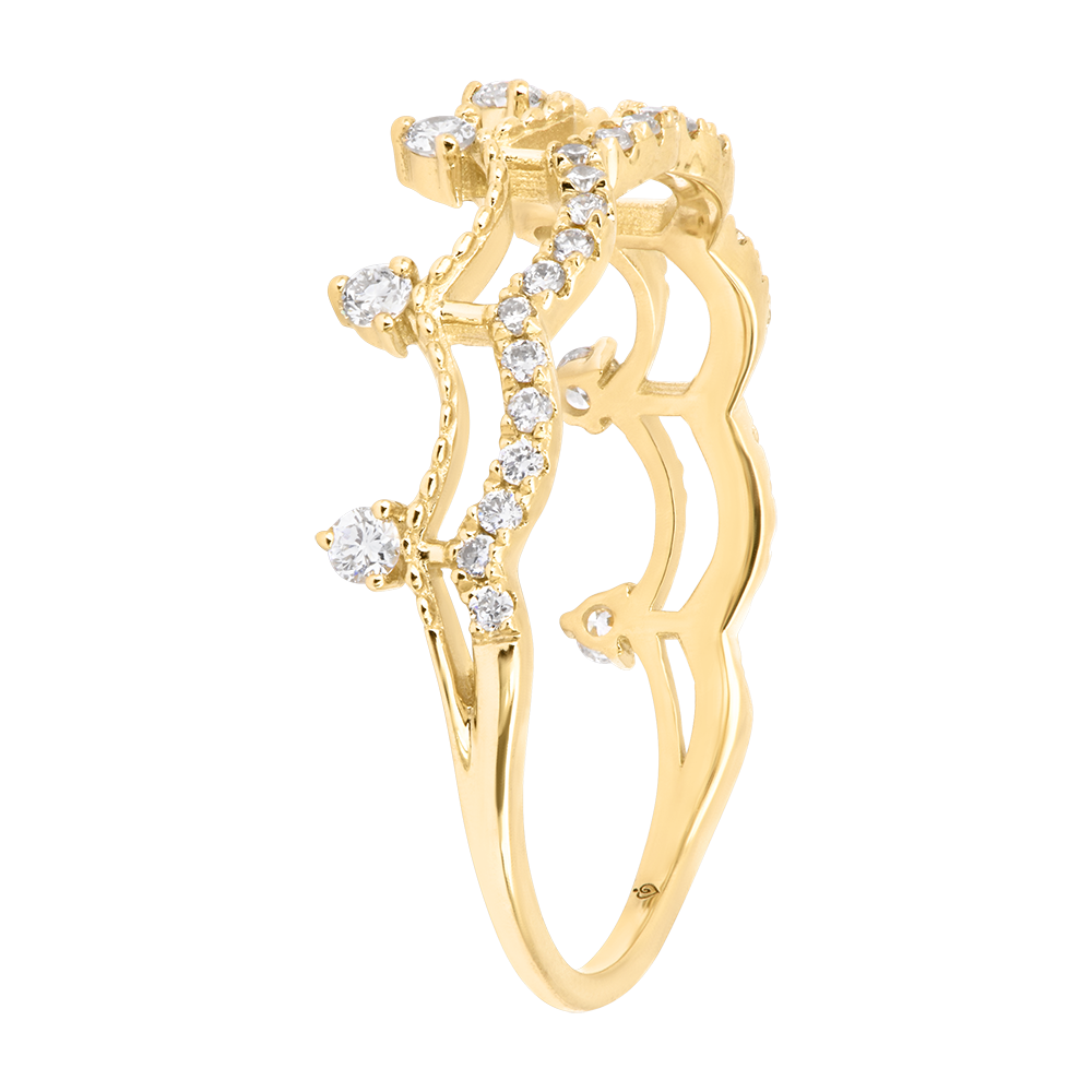 Il profilo sottile ricorda un diadema che si posa delicatamente sulla mano, donando un tocco regale e luminoso.