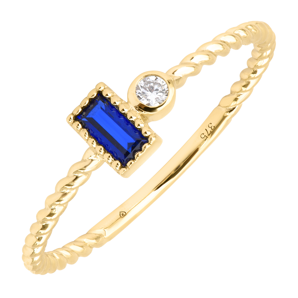 Anello Maelis – Oro giallo 9 carati, zaffiro e diamante sintetici