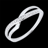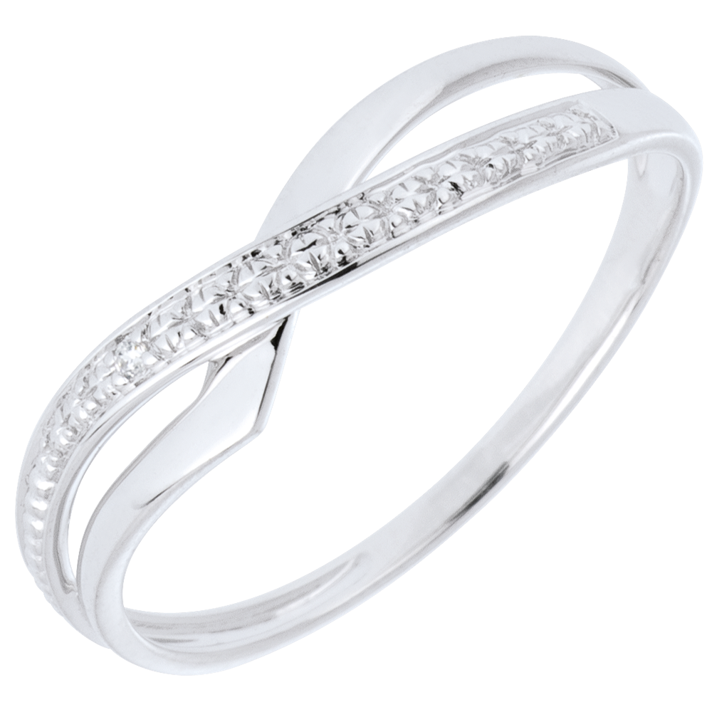 La sagoma in oro di un uccello incontra un'onda in oro bianco con un diamante incastonato.