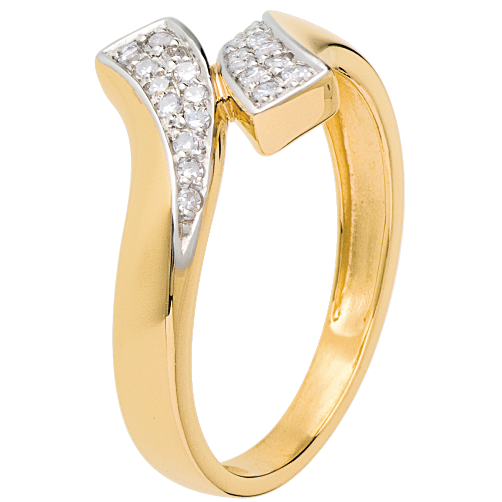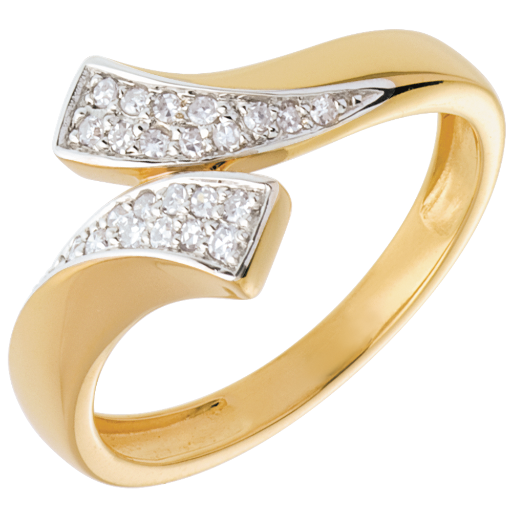 Anello Nastro - Oro giallo e Oro bianco pavé - 18 carati - 24 Diamanti - 0.12 carati
