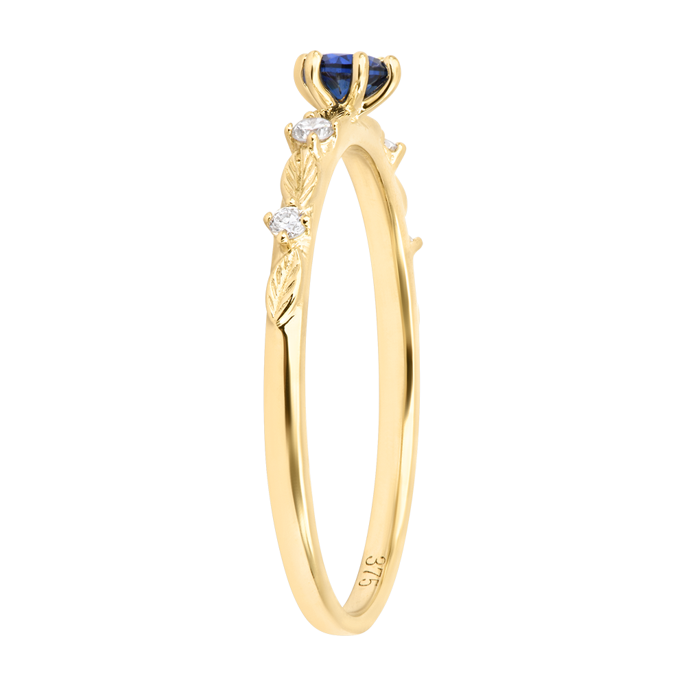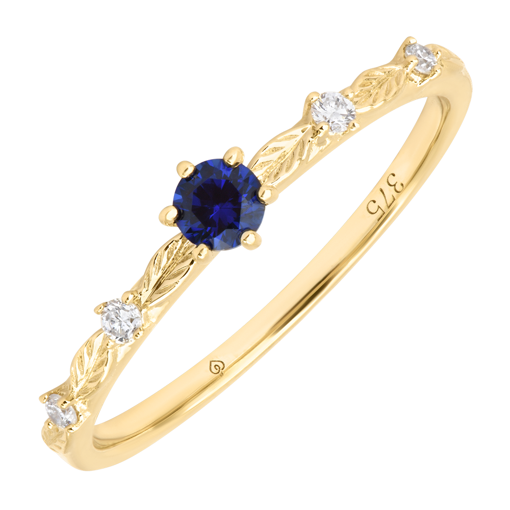 GIARDINO INCANTATO N. 19Anello Foglie - Oro giallo 9 carati - Zaffiro sintetico, Diamante di laboratorio ID : 3949