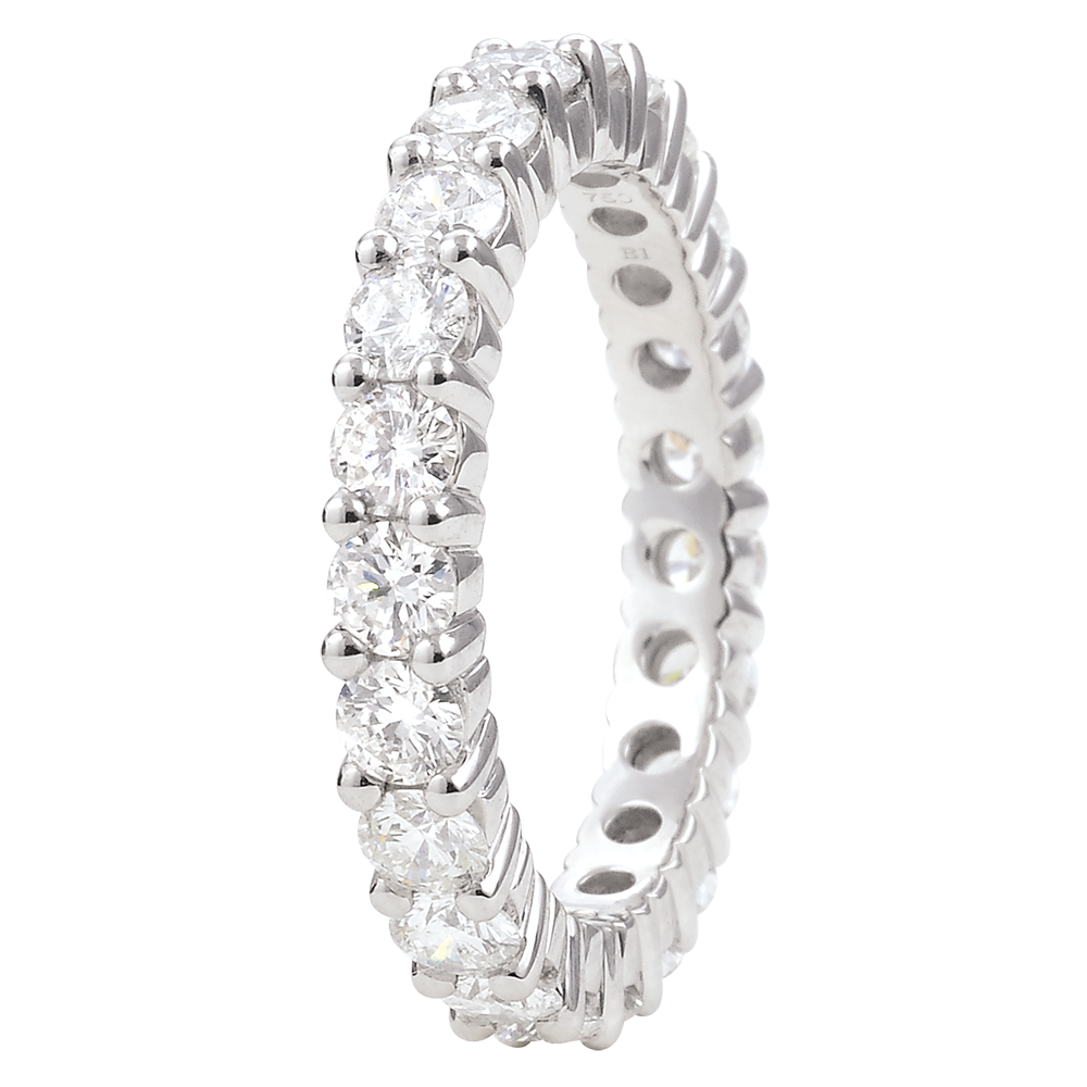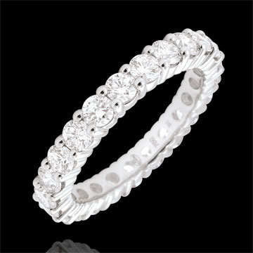 Anello oro bianco pavée - incastonato griffe - 2 carati - Cerchio completo