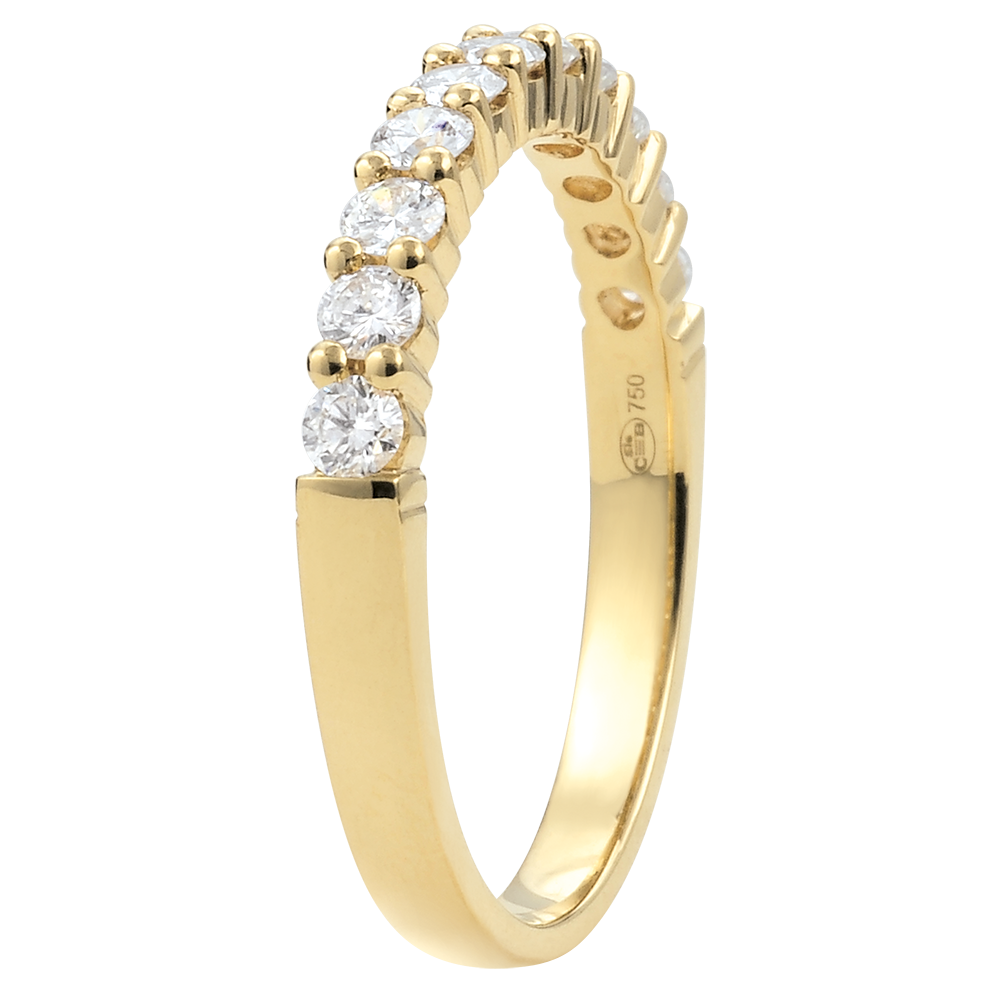 Fede nuziale - Oro giallo semi pavé -18 carati - 11 Diamanti - incastonatura a griffe - 0.4 carati