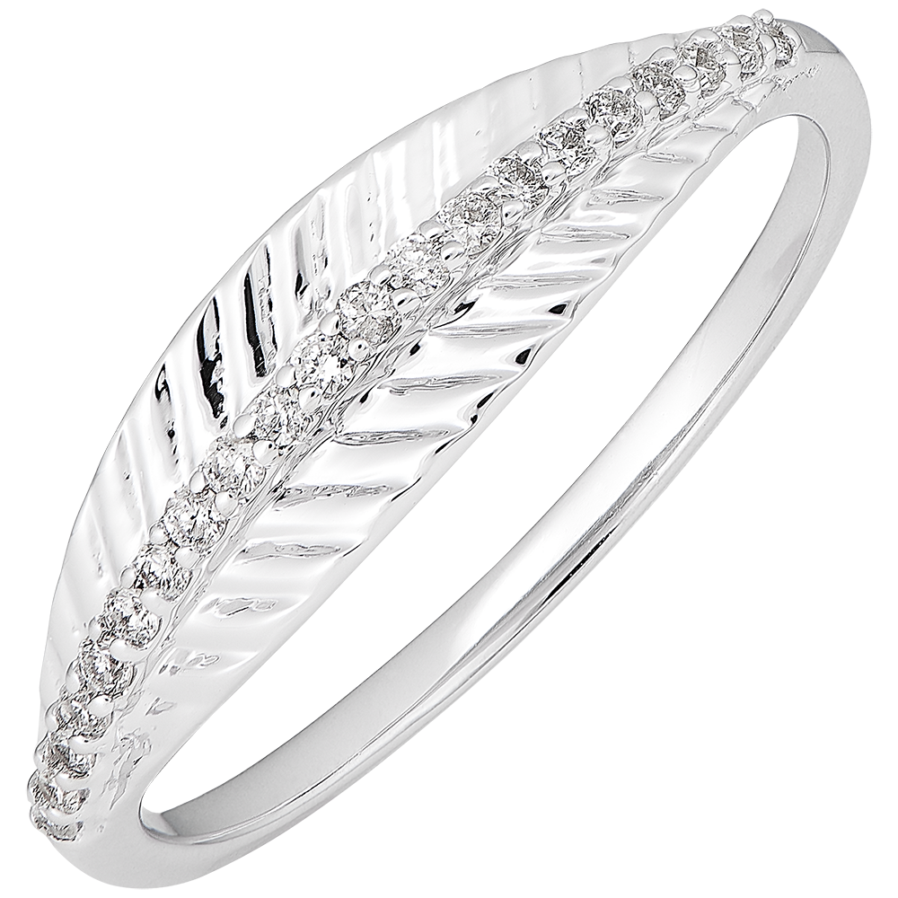 GIUNGLA SACRA N. 8Anello Foglie - Oro bianco 9 carati - Diamante ID : 2092