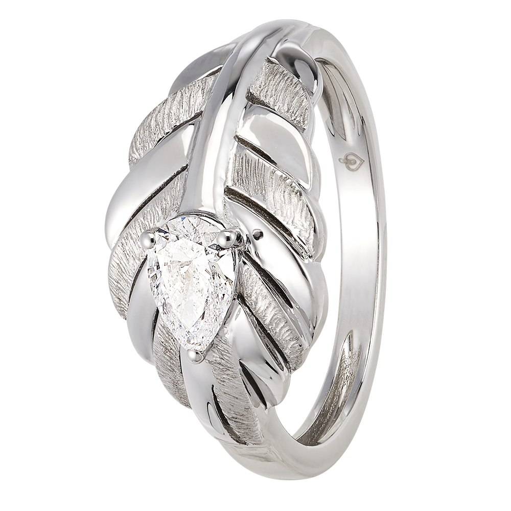 L'anello Altesse in oro bianco 9 carati mette in risalto un diamante sintetico centrale, di 0,37 carati, di forma a pera. Il suo design ispirato dalla piuma incarna perfettamente l'eleganza e la raffinatezza della collezione Panache.