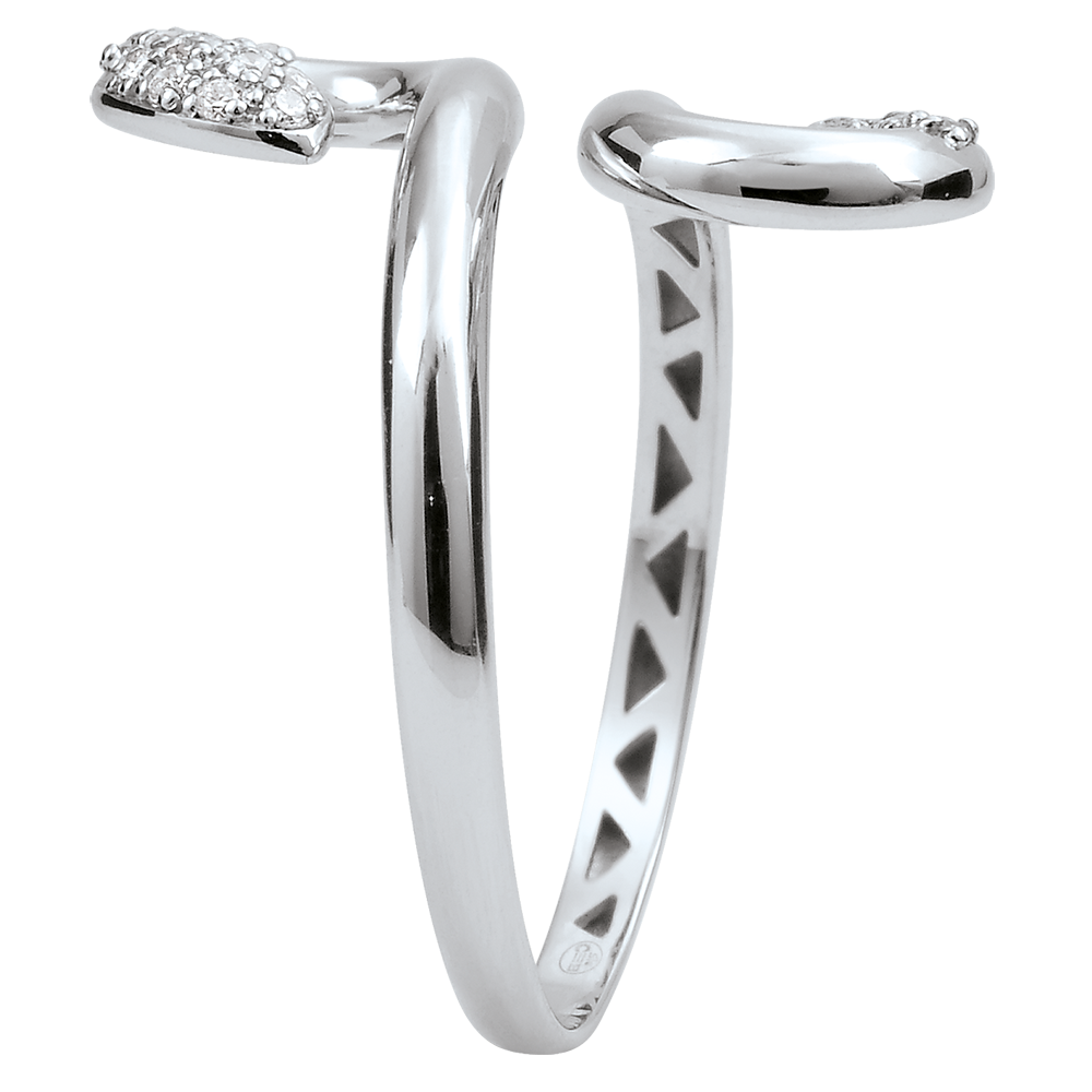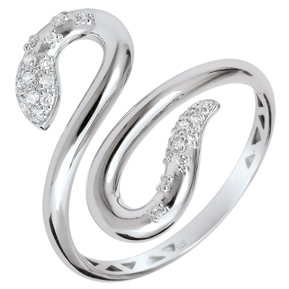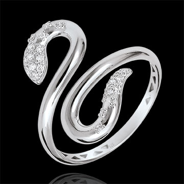 Un sofisticato anello a serpente in oro bianco, dalle ammalianti e attraenti forme ricoperte di diamanti.