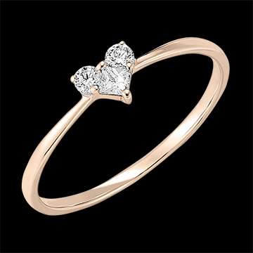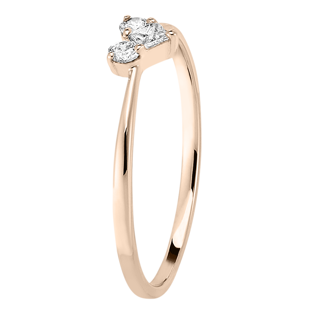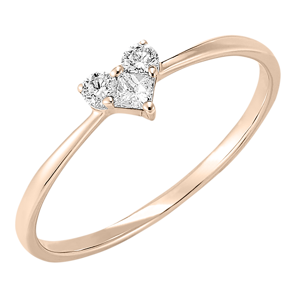 L’anello è realizzato in oro rosa 9 carati e impreziosito da 3 diamanti naturali di qualità HSI per un totale di 0,14 carati.